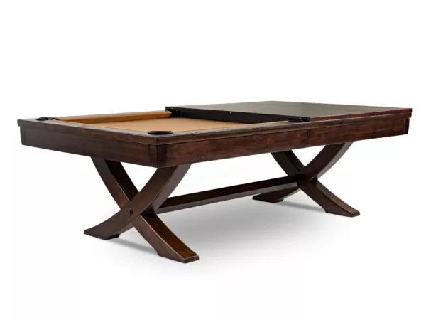 The Reagan Dining Billiard Table by Presidential Billiards is an elegant, solid wood pool table in an Ash brown finish. The sweeping arc of the legs gives this table an elegance that will look stunning in any home.